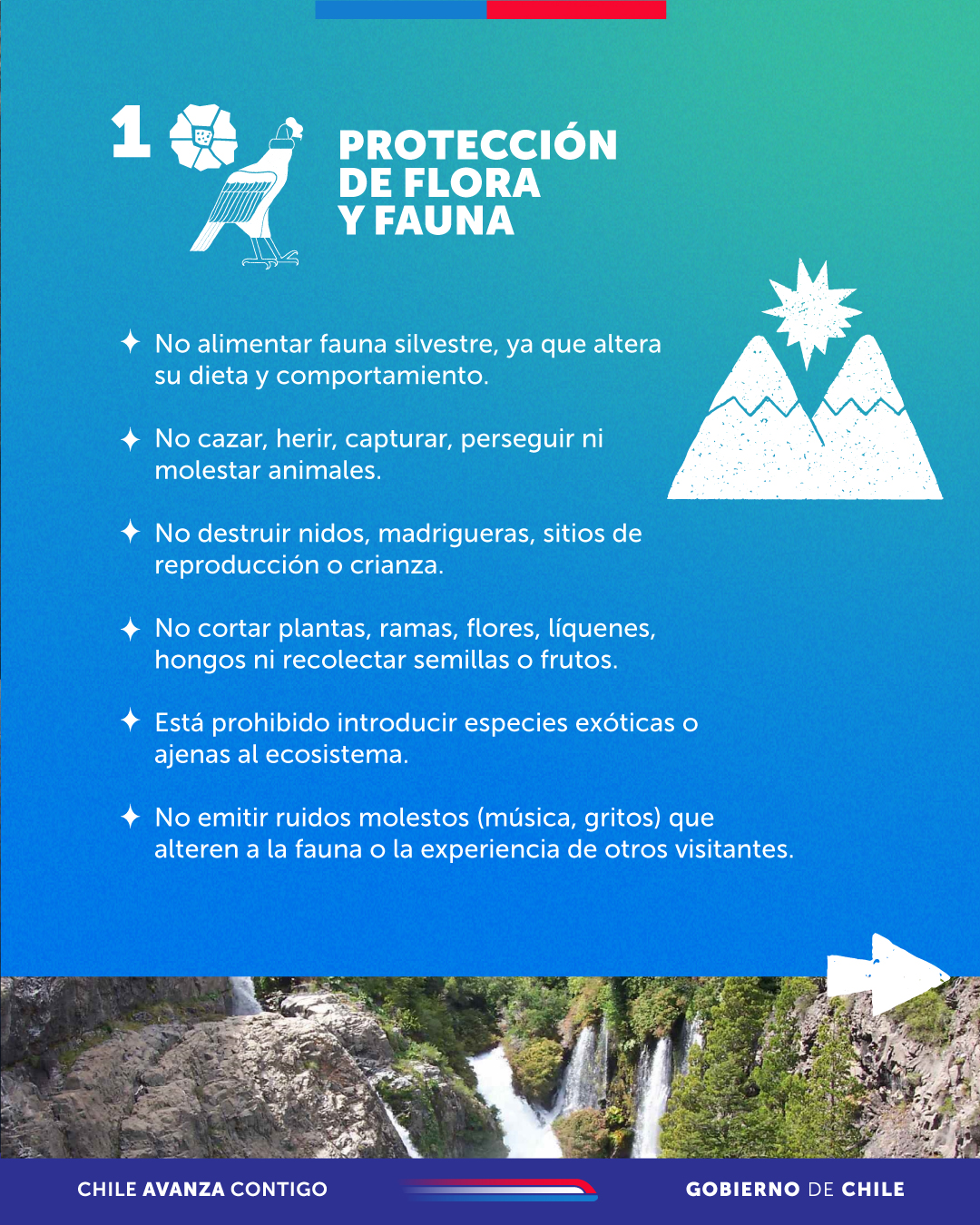 Por la seguridad del patrimonio natural y cultural del país, además de la de los propios visitantes y también de residentes de zonas cercanas a áreas protegidas, la Corporación Nacional Forestal (CONAF) reiteró que los turistas deben cumplir con las normas proporcionadas por el personal de guardaparques como también las indicaciones y advertencias existentes en las señaléticas instaladas en parques nacionales.