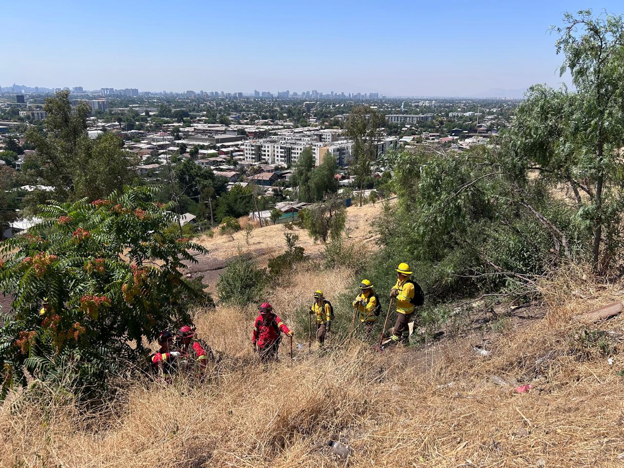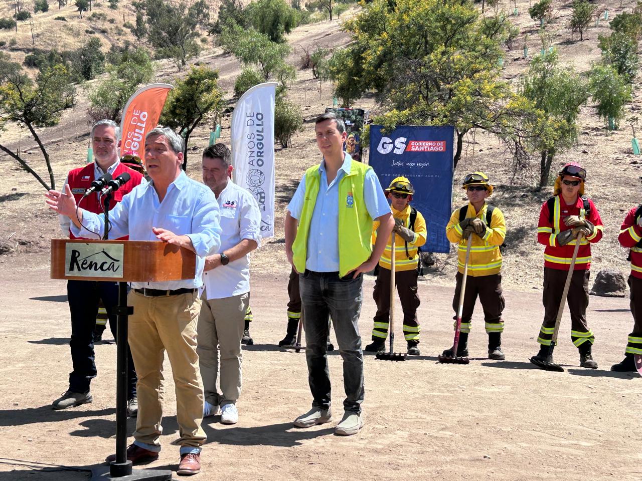 Mientras que el alcalde de Renca, Claudio Castro, detalló que desde hace algunos años están trabajando en un modelo de prevención junto con CONAF. “El proyecto consta de la instalación de corta fuegos y solo en esta temporada ya llevamos 14 mil metros cuadrados, es decir, son 8 kilómetros lineales, que tienen como objetivo principal separar un potencial incendio de las viviendas y también limitar el crecimiento del fuego en el resto del parque, considerando que solo en noviembre tuvimos 3 incendios en el cerro”.