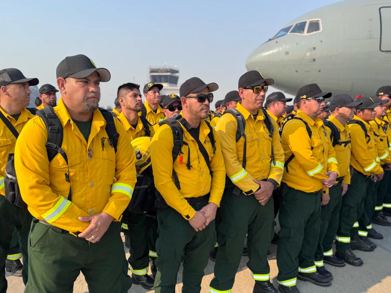 La delegación mexicana está compuesta por 7 brigadas forestales y personal de apoyo, compuesto por 145 integrantes, con experiencia en el combate de incendios de alta complejidad, que apoyarán las labores de control y combate de incendios en las zonas afectadas.