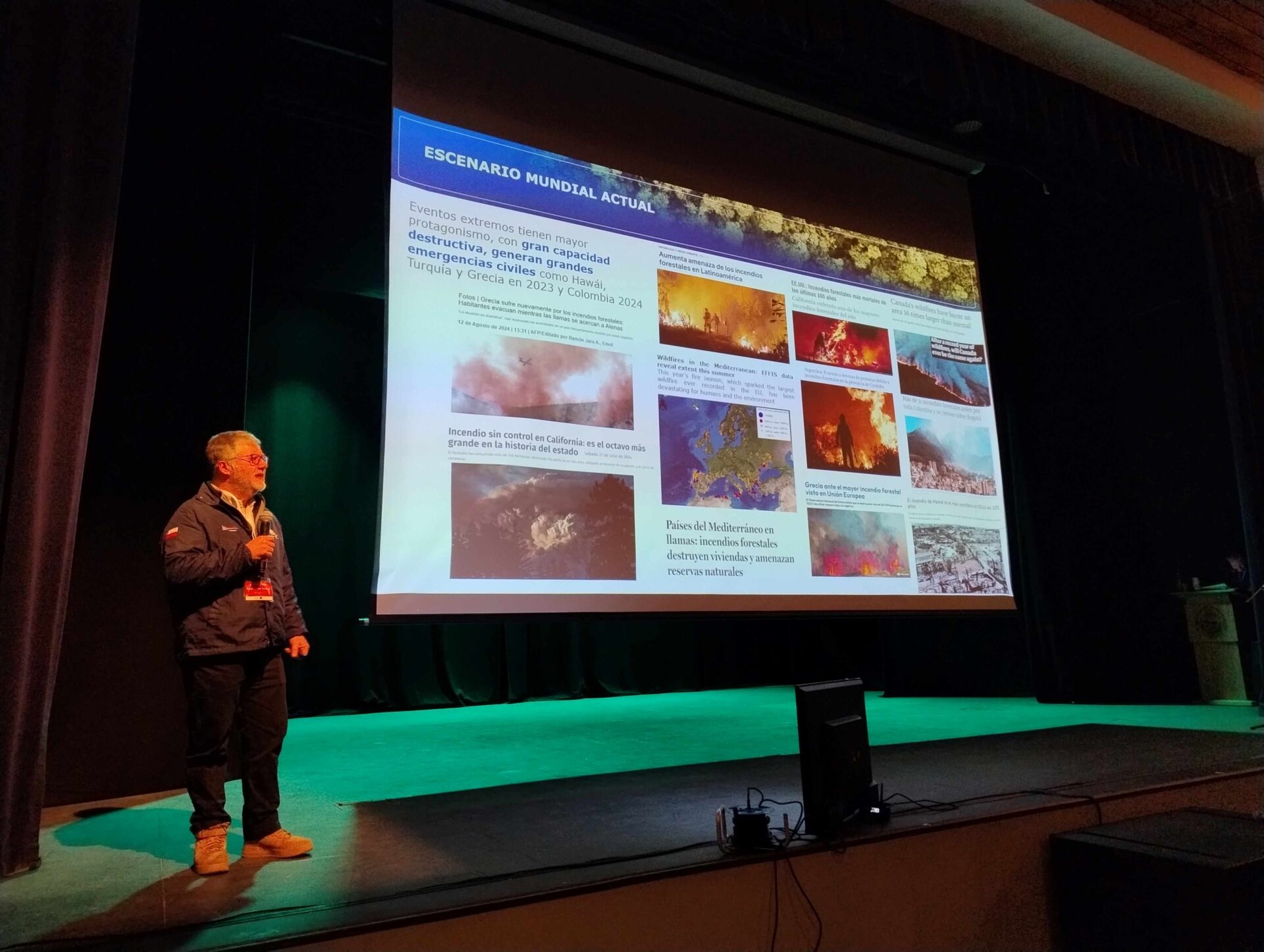Posteriormente, se dio lugar a las exposiciones, siendo la primera a cargo de Juan Eduardo Barrientos, jefe del Departamento de Protección Contra Incendios Forestales de la Región de Aysén, quién introdujo la jornada ante los nuevos escenarios que enfrenta el territorio patagónico, para, posteriormente, continuar con diversos representantes de la corporación, quienes presentaron temas que abarcaban desde la planificación territorial, los nuevos usos de tecnología aplicadas en la prevención y combate de incendios forestales.
