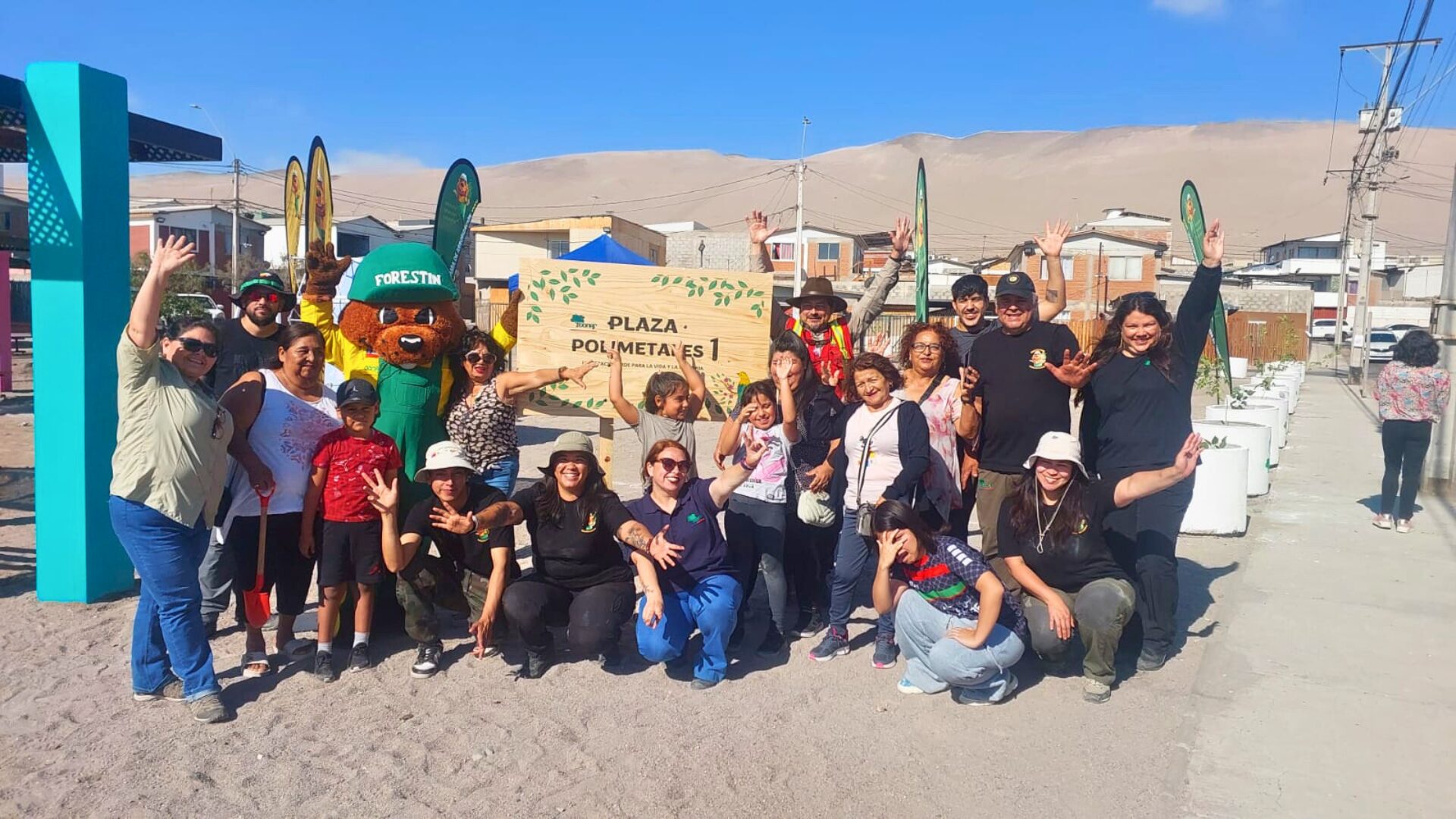 Con 21 macetas blancas que llevan la cara del coipo Forestín y que lucen hermosas plantas nativas, la plaza “Polimetales 1” de la población “Polimetales 2”, en el sector norte de Arica, disfruta de una cara renovada y verde gracias a la inversión realizada por el Programa Comunitario del Departamento de Bosques y Cambio Climático de la Corporación Nacional Forestal, CONAF, de Arica y Parinacota.