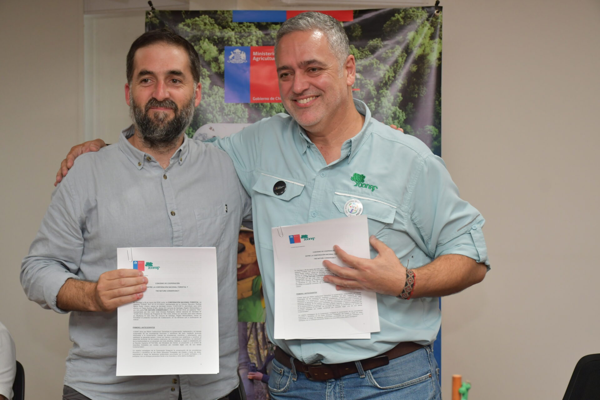 En una ceremonia encabezada por el director ejecutivo de la Corporación Nacional Forestal (CONAF), Rodrigo Illesca Rojas, junto al director ejecutivo de The Nature Conservancy (TNC) Chile, Juan José Donoso Rodríguez; y el director ejecutivo de Fondo Naturaleza Chile, Eugenio Rengifo Grau; las instituciones formalizaron la firma de un acuerdo de colaboración destinado a fortalecer la resiliencia de los ecosistemas y las comunidades, así como robustecer la acción temprana posincendios, para acelerar la recuperación de los ecosistemas.