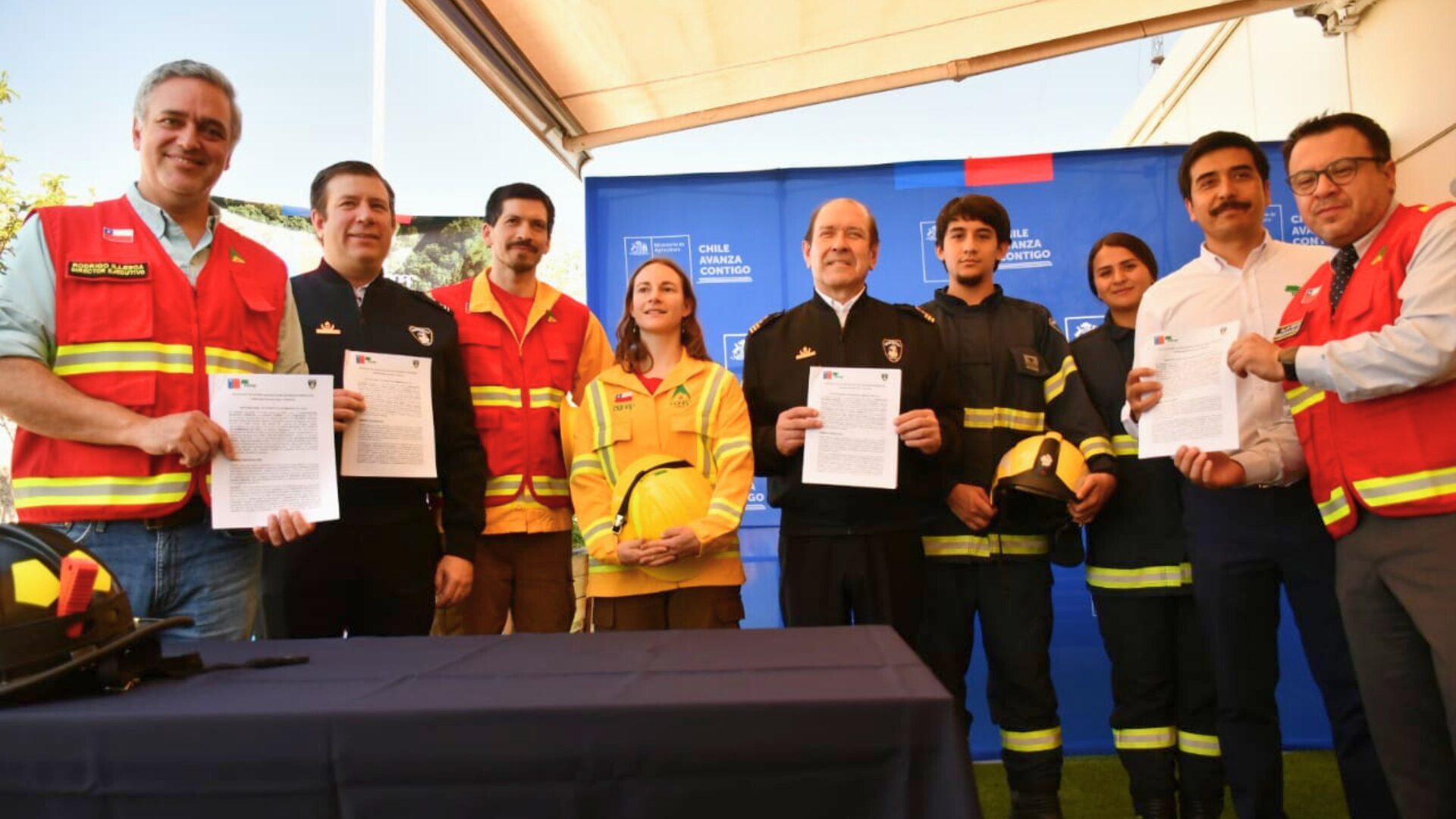 Este martes, en el edificio del Ministerio de Agricultura, se realizó la firma de un protocolo para fortalecer, orientar y coordinar la acción conjunta entre la Corporación Nacional Forestal (CONAF) y la Junta Nacional del Cuerpo de Bomberos de Chile, en materia de incendios forestales y de interfaz urbano-rural.