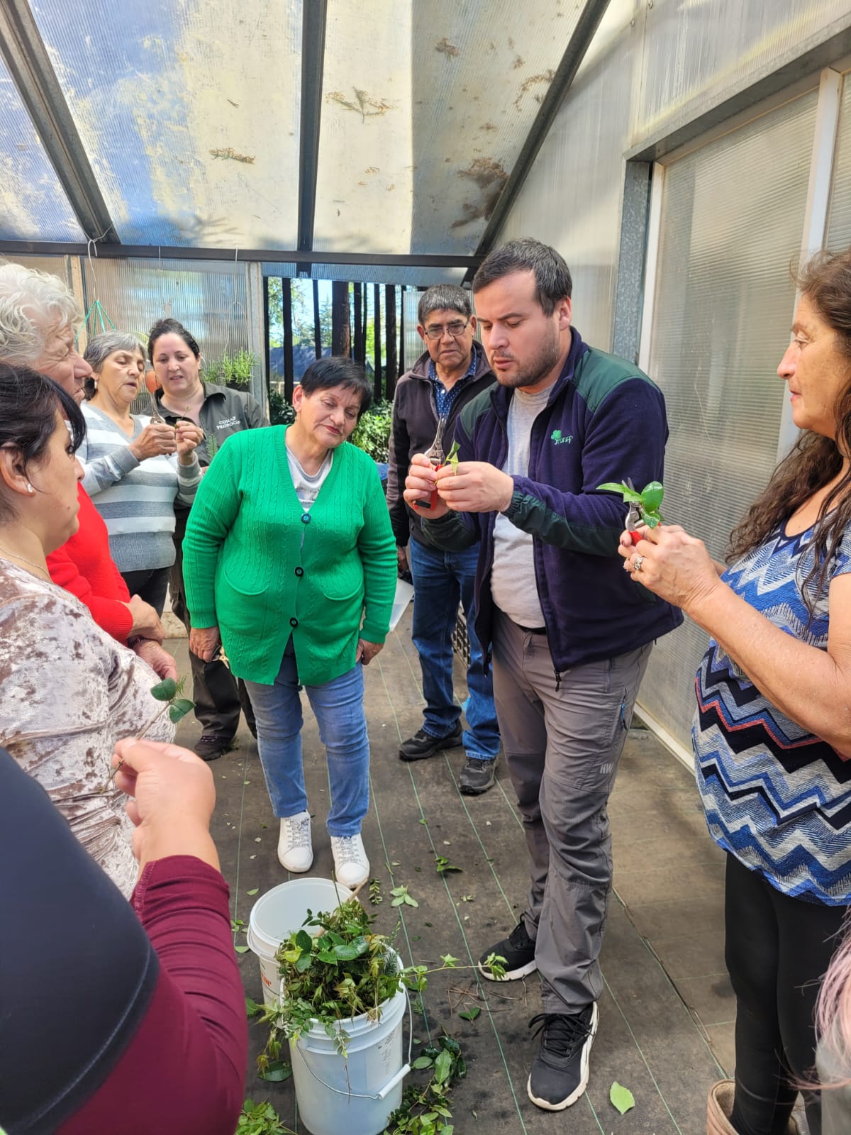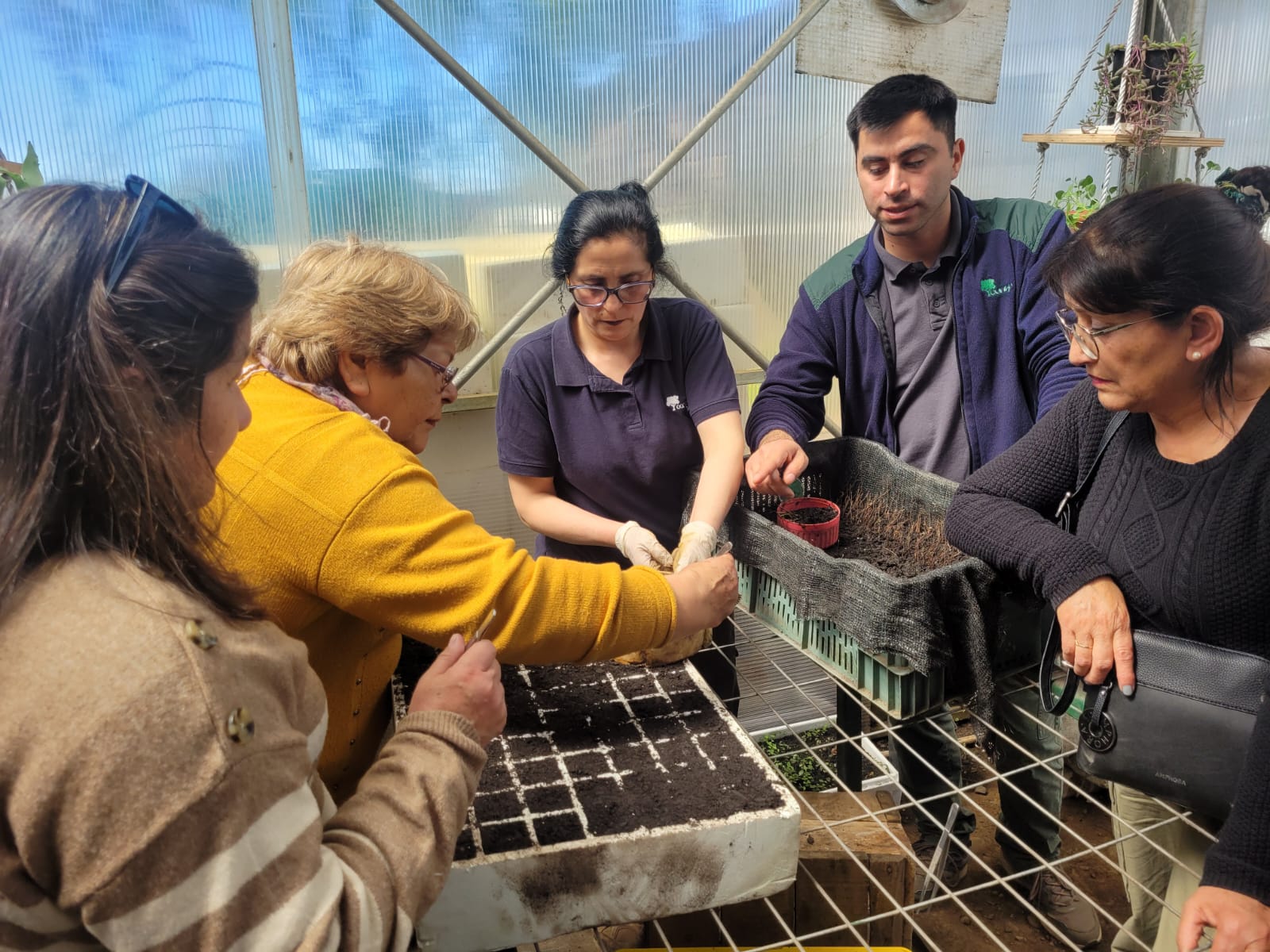 La visita incluyó una capacitación teórico-práctica, liderada por Víctor Albarrán, encargado del vivero de CONAF, quien explicó: “El objetivo de la capacitación es que las participantes comprendan los dos principales métodos de reproducción: vegetativo y por semillas. Primero, se realizó una sesión teórica donde se presentaron los procesos de producción del vivero, para luego llevar a cabo actividades prácticas en los módulos. Las mujeres aprendieron a recolectar material vegetativo, prepararlo e instalarlo, y también trabajaron con sustratos y siembra de semillas”.