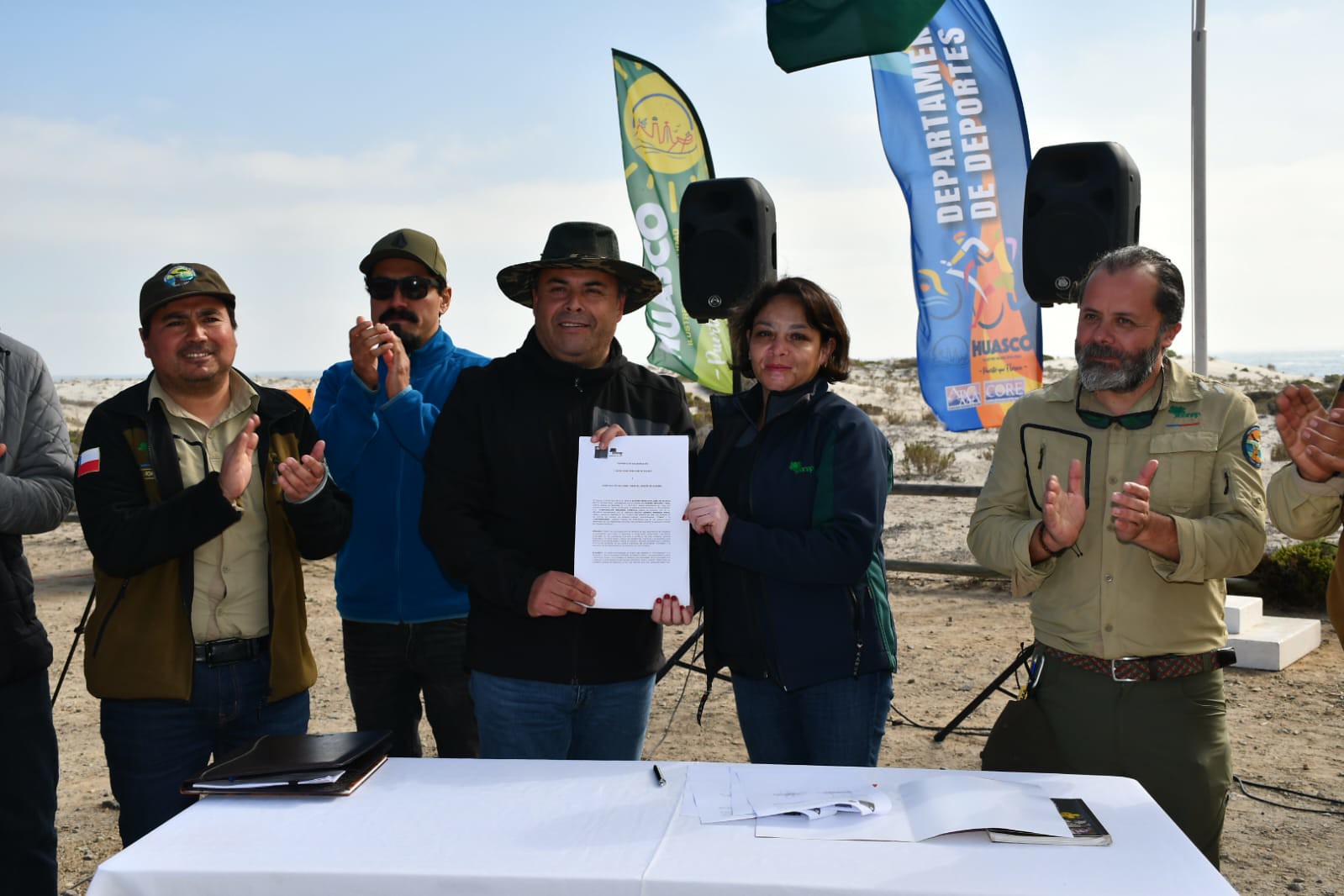 La ceremonia fue encabezada por el gobernador de la Región de Atacama, Miguel Vargas Correa, y la directora regional de CONAF, Sandra Morales Pérez, quienes firmaron el compromiso. Además, también se realizó la firma de un convenio de cooperación con la municipalidad de Huasco, quien estuvo representada por su alcalde, Genaro Briceño Tapia. Además contó con la participación de los consejeros regionales Fabiola Pérez, Igor Verdugo y Roberto Alegría, y la seremi de las Culturas, las Artes y Patrimonio, Carolina Armenakis.