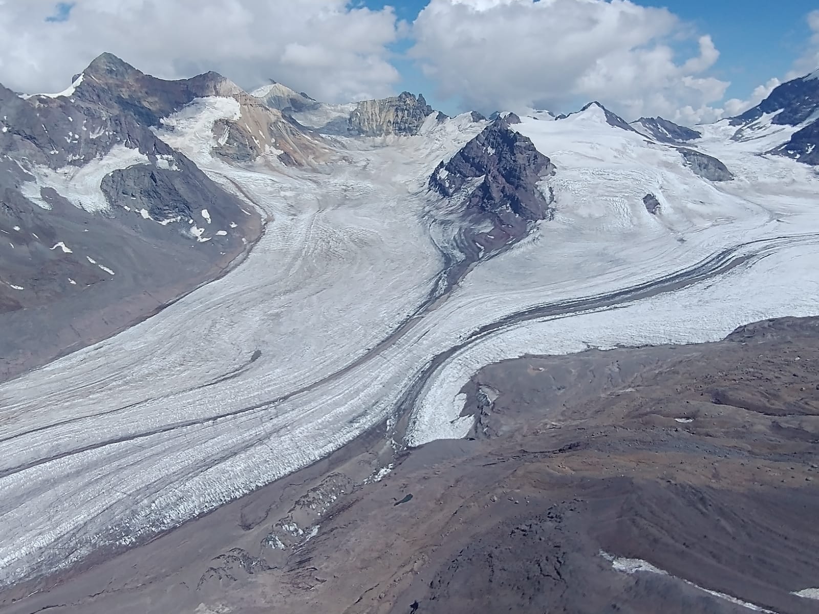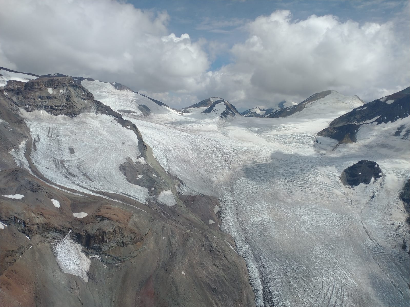 Datos generales | El Parque Nacional Glaciares de Santiago se creó mediante el Decreto Supremo 25 del Ministerio de Bienes Nacionales, publicada en el Diario Oficial el 16 de agosto de 2023. Administrativamente se ubica en la comuna de San José de Maipo, provincia de Cordillera, en la Región Metropolitana. El objetivo de creación del parque nacional es asegurar la protección del sistema cordillerano de las cuencas altas de los ríos Olivares y Colorado y sus cuerpos glaciares como reservorios de agua estratégicos para la Región Metropolitana. Sus principales objetos de protección corresponden a los ambientes de alta montaña: glaciares, los ríos Colorado y Olivares, flora nativa de alta montaña y fauna nativa, es especial aquellas en categoría de conservación. El parque nacional destaca por su rol estratégico y esencial en la dinámica natural de los cursos de agua que influyen en los procesos ecológicos de los ecosistemas bajo su influencia, además de representar un potencial bienestar general para la población, dado que estos cuerpos de hielo ofrecen variados beneficios tanto de provisión, de regulación y de reconocimiento cultural. Dada la connotación de altura del parque nacional (sobre los 3600 msnm), el más importante valor a destacar es su geodiversidad, destacando fundamentalmente dos aspectos: los glaciares y las formaciones geomorfológicas. En primer lugar, respecto de los glaciares, en la cuenca del río Olivares se encuentran 118 glaciares y una superficie glaciarizada de 8600 ha, entre ellos el Juncal Sur (2440 ha) y el Olivares Gamma-A (1120 ha). Por su parte, la cuenca del río Colorado posee 250 glaciares y una superficie glaciarizada de 12.150 ha, algunos de ellos son Azufre (9700 ha) y Tupungato (7500 ha). Algunos de estos son los más grandes de la Región Metropolitana. |