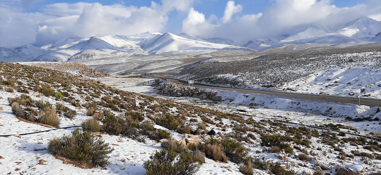 Flora | Principalmente gramíneas como la Festuca orthophylla, Deyeuxia breviaristata, Pycnophyllum molle, otras especies arbustivas como Parestrephia quadrangularis, P. lucida, Adesmia leucopogon, Astragalus arequipensis y varias especies del género Senecio. En áreas donde el escurrimiento superficial es constante y el suelo se encuentra saturado, surgen los bofedales, que incluye un complejo florístico cuyas especies más representativas corresponden a Oxychloe andina, Carex incurva, Festuca rigescens, Werneria pygmaea, Genciana prostat, Azolla filiculoides, Lilaeopsis macrolepis, Distichia muscoides. En sectores de mayor altitud y altamente rocosos, se encuentran comunidades de plantas pulvinadas, tales como la especie llareta (Azorella compacta), asociada con especies arbustivas y herbáceas, tales como Festuca orthophyllus, Pycnophyllum molle, etc. En sectores de similares características, componiendo otro estrato, se encuentran los queñoales, caracterizados por la especie Polylepis tarapacana. Mientras, que en la zona precordillerana, que comprende desde los 3200 msnm a 3800 msnm presenta en sus laderas, matorrales bajos que son la vegetación típica del sector. En quebradas y laderas se aprecian bosques de queñoa (Polylepis rugulosa), y ya en el altiplano (sobre los 3800 msnm) se distinguen dos tipos de praderas; la de secano y la húmeda (bofedal). |