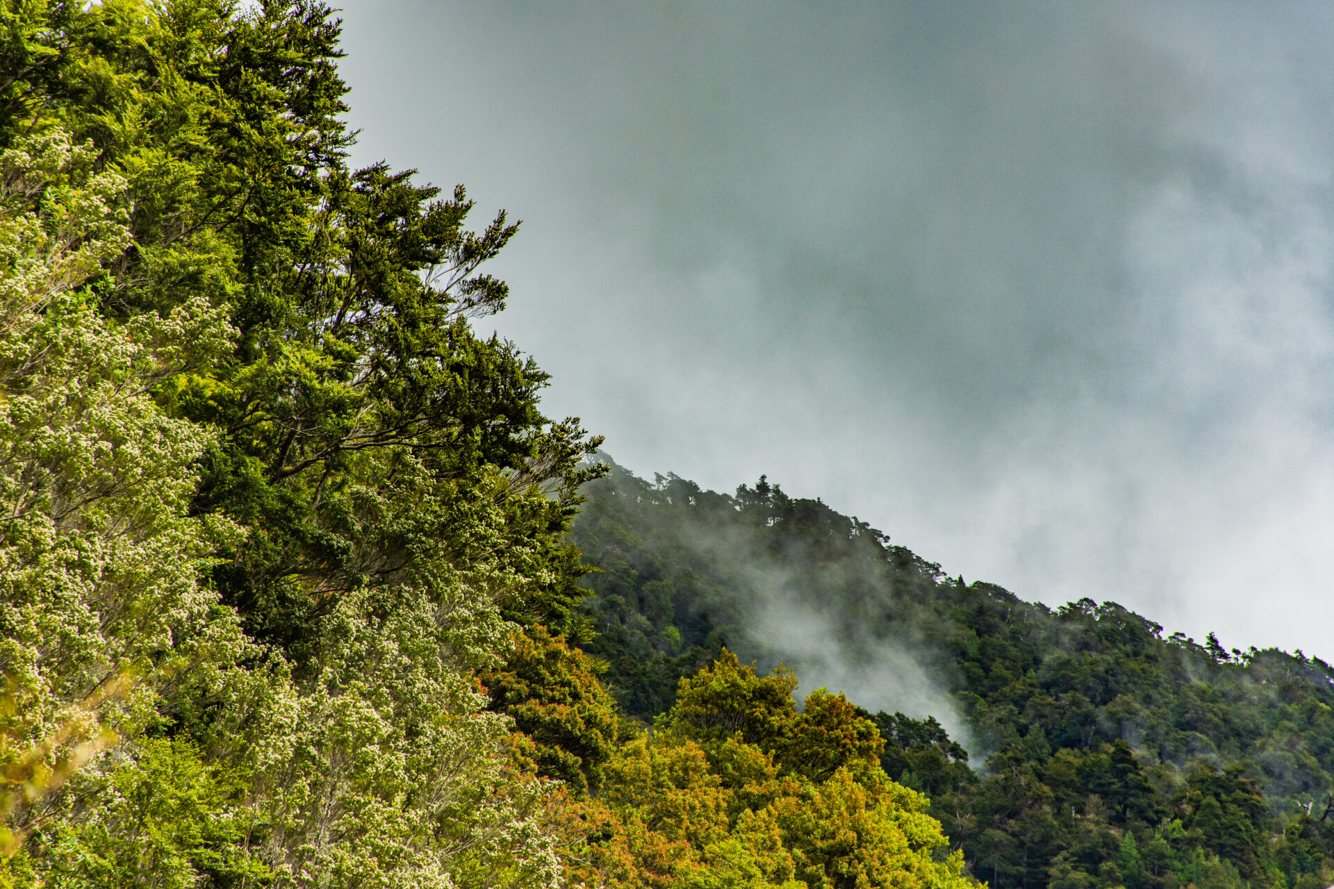 Flora | En el parque se encuentran dos regiones ecológicas: la primera es el bosque andino patagónico, en donde se encuentran especies como la lenga (Nothofagus pumilio), coigüe de Magallanes (Nothofagus betuloides), maitén enano (Maytenus disticha) y michay blanco (Desfontainia spinosa). En tanto, la otra es denominada bosque siempreverde y turberas, cuyas especies más relevantes son coigüe de Chiloé (Nothofagus nitida), tepa (Laureliopsis philippiana), tineo (Weinmannia trichosperma), canelo (Drimys winteri) y chilco (Fuchsia magellanica), por nombrar algunas. |