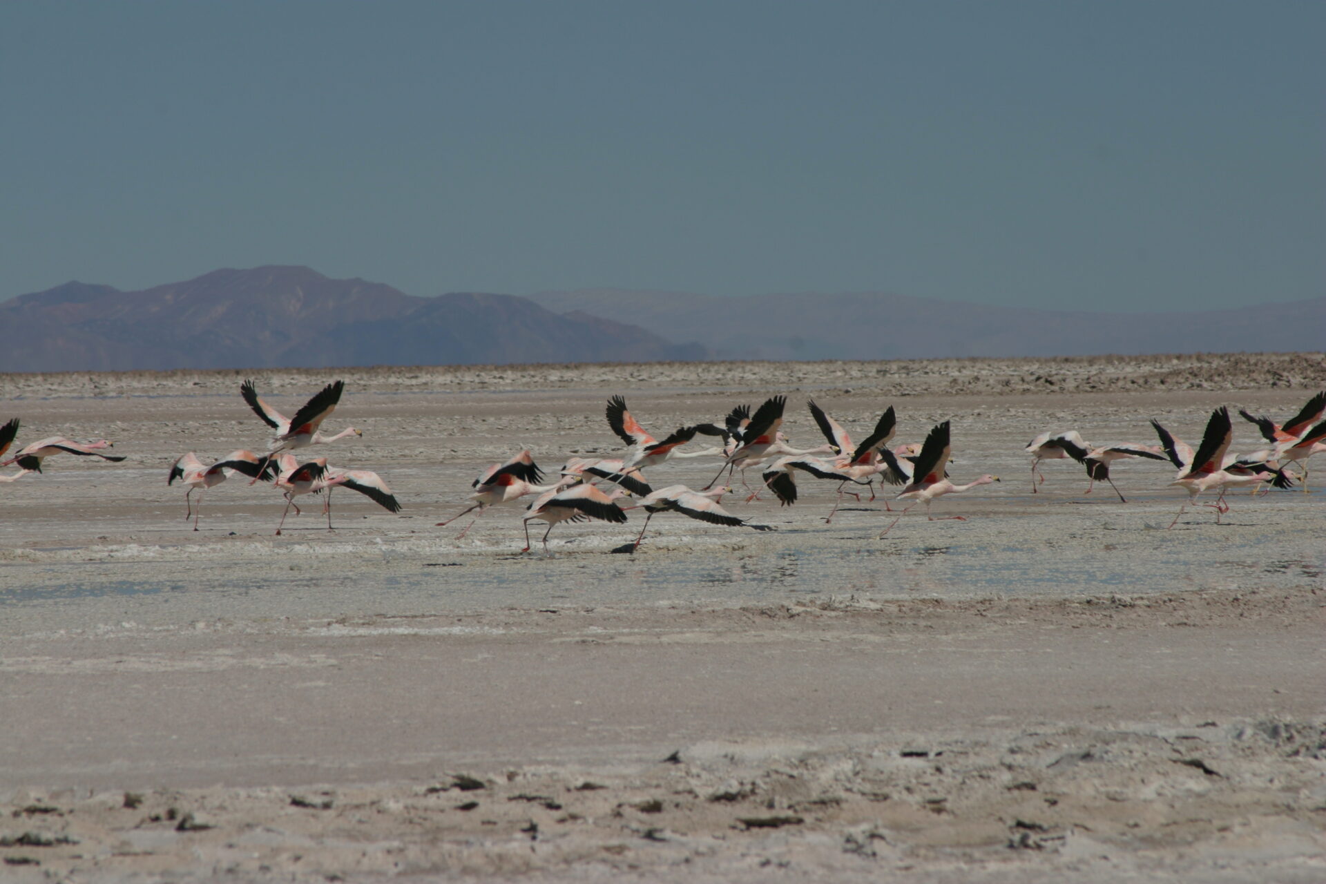 Fauna silvestre | Entre los mamíferos es posible encontrar al marsupial yaca de la puna (Thylamys pallida), el quirquincho de la puna (Euphractus nationi), el lauchón de la puna (Auliscomys sublimis leucurus), el zorro culpeo (Lycalopex culpaeus), el quique (Galictis cuja), el puma (Puma concolor), la vicuña (Vicugna vicugna), la vizcacha (Lagidium viscacia) y el ratón chinchilla (Abrocoma cinerea). Por su parte, entre las aves se pueden nombrar al suri o ñandú del norte (Rhea pennata), la kiula (Tinamotis pentlandii), el cóndor (Vultur gryphus), la tagua cornuda (Fulica cornuta), la gaviota andina (Chroicocephalus serranus), la perdicita cordillerana (Attagis gayi), la guayata (Chloephaga melanoptera) y las tres especies de flamencos que anidan en el país, de las seis existentes en el mundo: parina grande o flamenco andino (Phoenicoparrus andinus), parina chica o flamenco de James (Phoenicoparrus jamesi) y el flamenco chileno o austral (Phoenicopterus chilensis). |