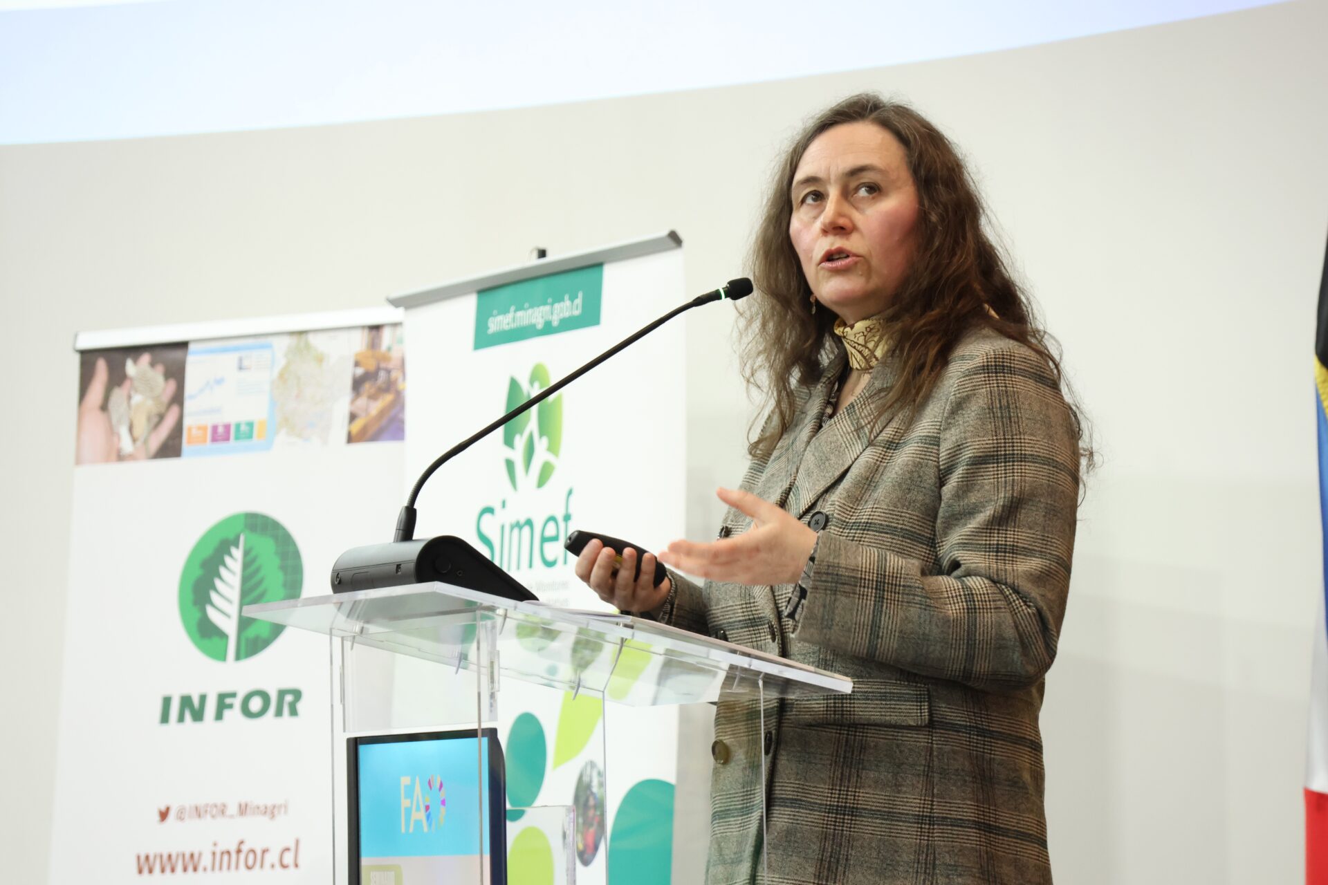 Elke Huss, gerenta de Evaluación y Fiscalización de Ecosistemas de CONAF, expuso sobre el trabajo de monitoreo de cambios de usos de la tierra que realiza la Corporación Nacional Forestal dentro de las actividades del programa SIMEF, destacando la importancia de este insumo cartográfico, debido a que estos mapas tienen una periodicidad bienal a escala nacional, labor sustentada en el Catastro de Recursos Vegetacionales.